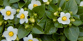 Eksakums (Exacum affine). Genciāņu (Gentianaceae), drudzeņu dzimta. Augam ir tumši zaļas, ovālas 4 cm garas lapiņas ar nosmailinātiem galiem un zvaigžņveidīgi, zilganvioleti, zili vai balti ziediņi ar dzeltenu vidu. Augs var sasniegt līdz 60 cm augstumu.