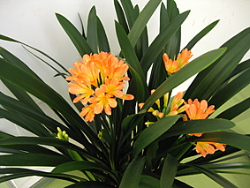 Klīvija (Clivia). Līdz 1,5 m augsts lapains amariļļu (Amarillidaceae) dzimtas sīpolaugs ar „pušķī” sakārtotiem nokareniem zvanveida ziediem garu kātu galos. Populārākā suga – Clivia miniata. Atšķirībā no populārā amariļļu dimtas auga – hipeastra, klīvijas miera periodā lapas nezaudē un to tumšais cers ir zaļš cauru gadu. Viegli audzējams telpaugs, kas neprasa lielu uzmanību.