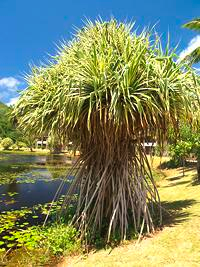 Pandāns (Pandanus). Pandānu dzimtas augs. Pandānu ģintī ietilpst ap 600 gan līdz 1 m augstu krūmveida augu, gan koku sugu. Pandāniem ir resns stumbrs, kurā saskatāmas bijušo lapu augšanas pēdas, kas kā gari zobeni aug tieši no stumbra. Gaisa saknes, kas pandndāniem veidojas, nevajadzētu apgriezt.