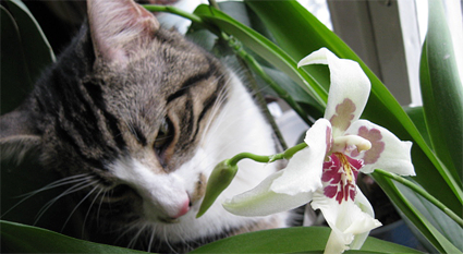 10. Vēl par augiem un dzīvniekiem. Vilšanos var sagādāt arī ne indīgi, bet kaķin interesējoši augi, kurus istabā sēdošais, garlaicības māktais un zaļumiņu kārojošais dzīvnieks var nospīdzināt līd bojāejai. Par to padomā pirms iegādājies dažādus augus ar smalkām garām lapiņam, kas tā vien aicina paspēlēties. Citi augi (hlorofīts, doņi, dižmeldrs) kaķim vienkārši garšo, bet pret paresniem gariem stumbriem kādi ir jukai, zvērelim varētu patikt uzasināt nagus, vai mēģināt pat tajā kāpt. Šos augus gan var kā reizi audzēt īpaši kaķa priekam un jautrībai, bet tad augam jāsagādā iespēja arī izaugt, pirms kaķis to ir nobeidzis., savādāk būs ne pašam, ne sašam. Pēc manas pieredzes augus veiksmīgi var nošķirt ar garām caurspīdīga plastikāta sētiņām vai trubām.